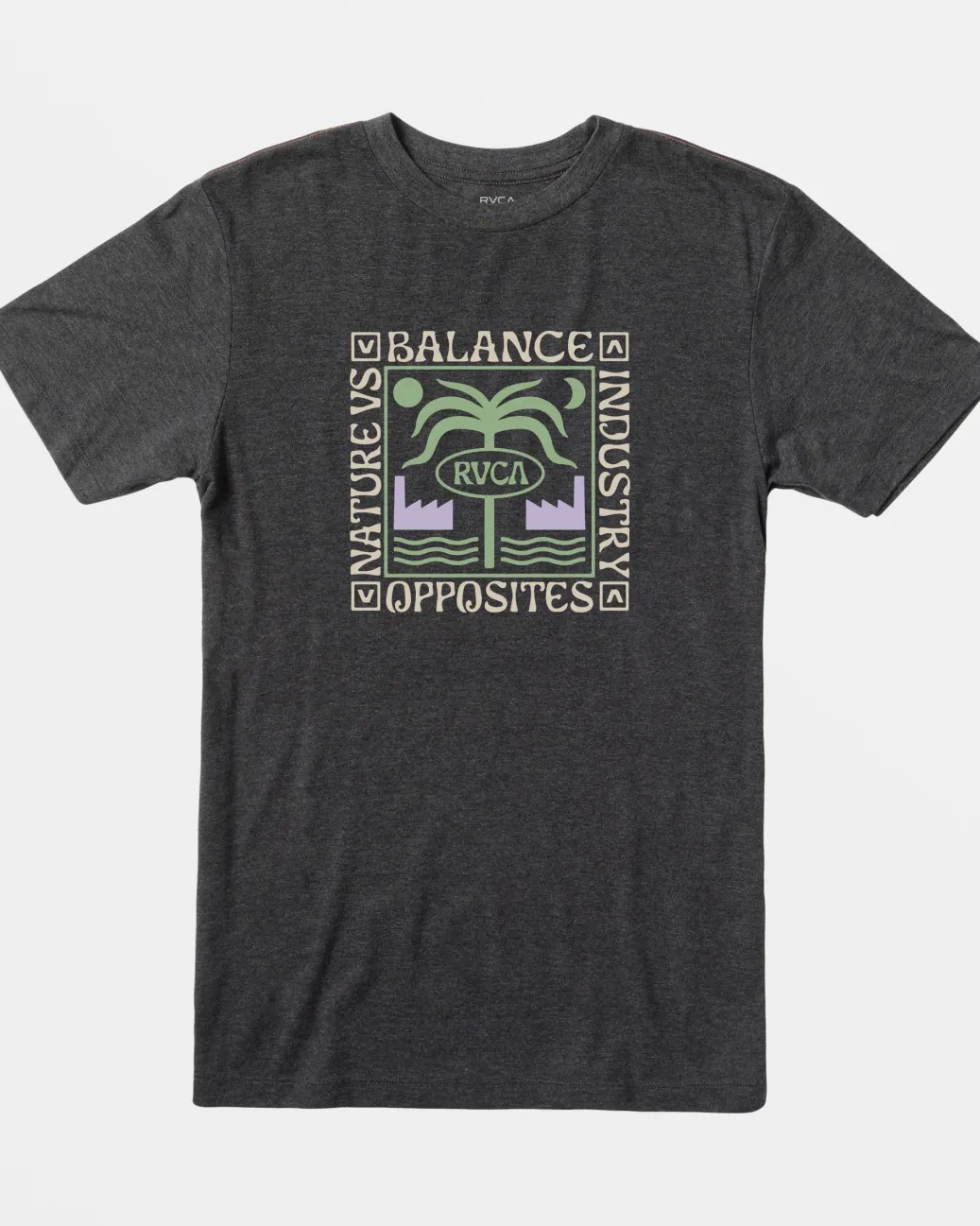 A vintage-dyed slim-fit tee for effortless style and easy wear. The cotton-poly blend fabric feels soft on the skin while screenprint chest graphics and our trademark red stitch detailing add authentic RVCA style. Featured here in the Black colorway.