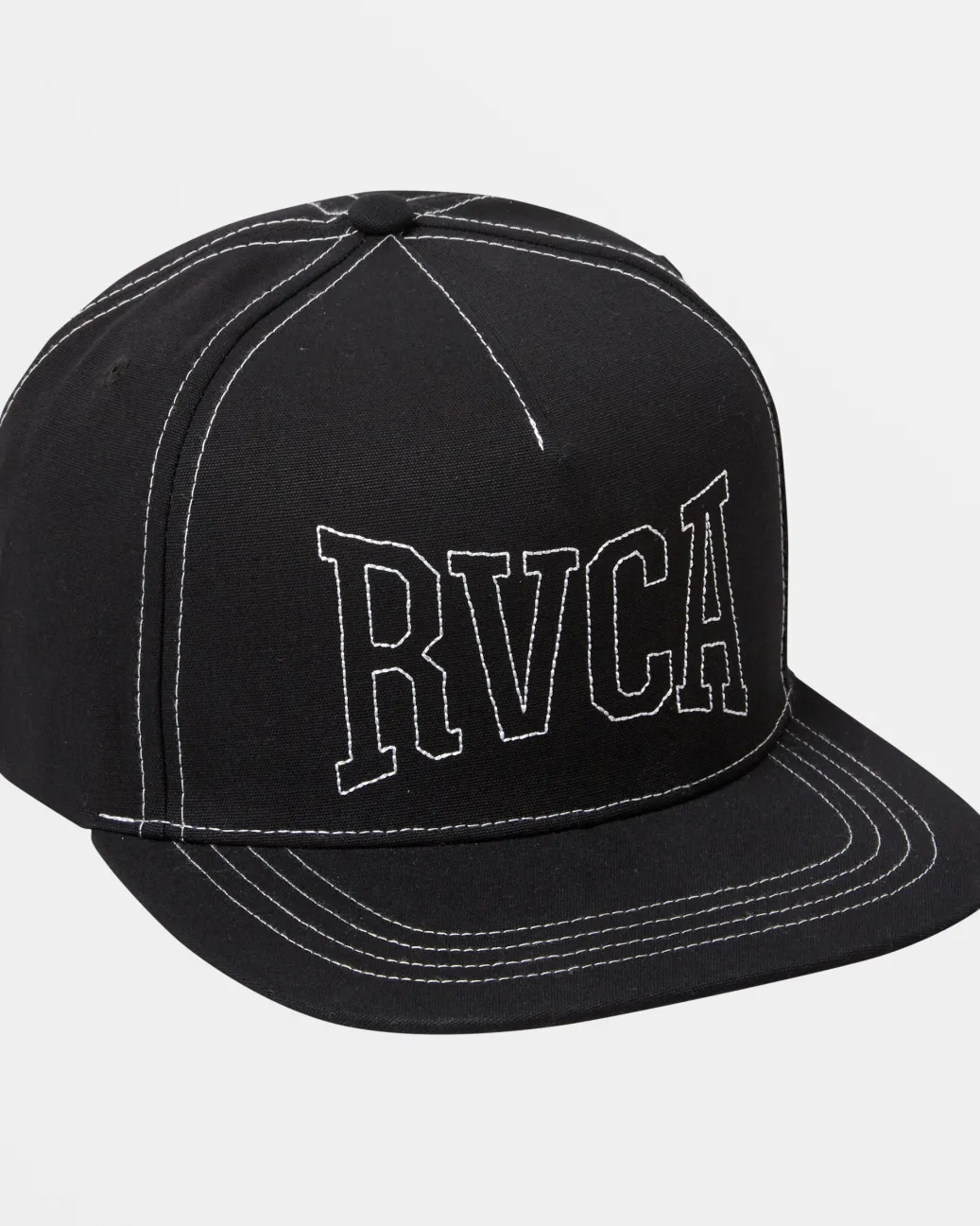 Crafted from breathable organic cotton fabric, the Stitch flat bill hat features subtle RVCA embroidery and a snapback closure that ensures a secure fit whether lounging or skating.