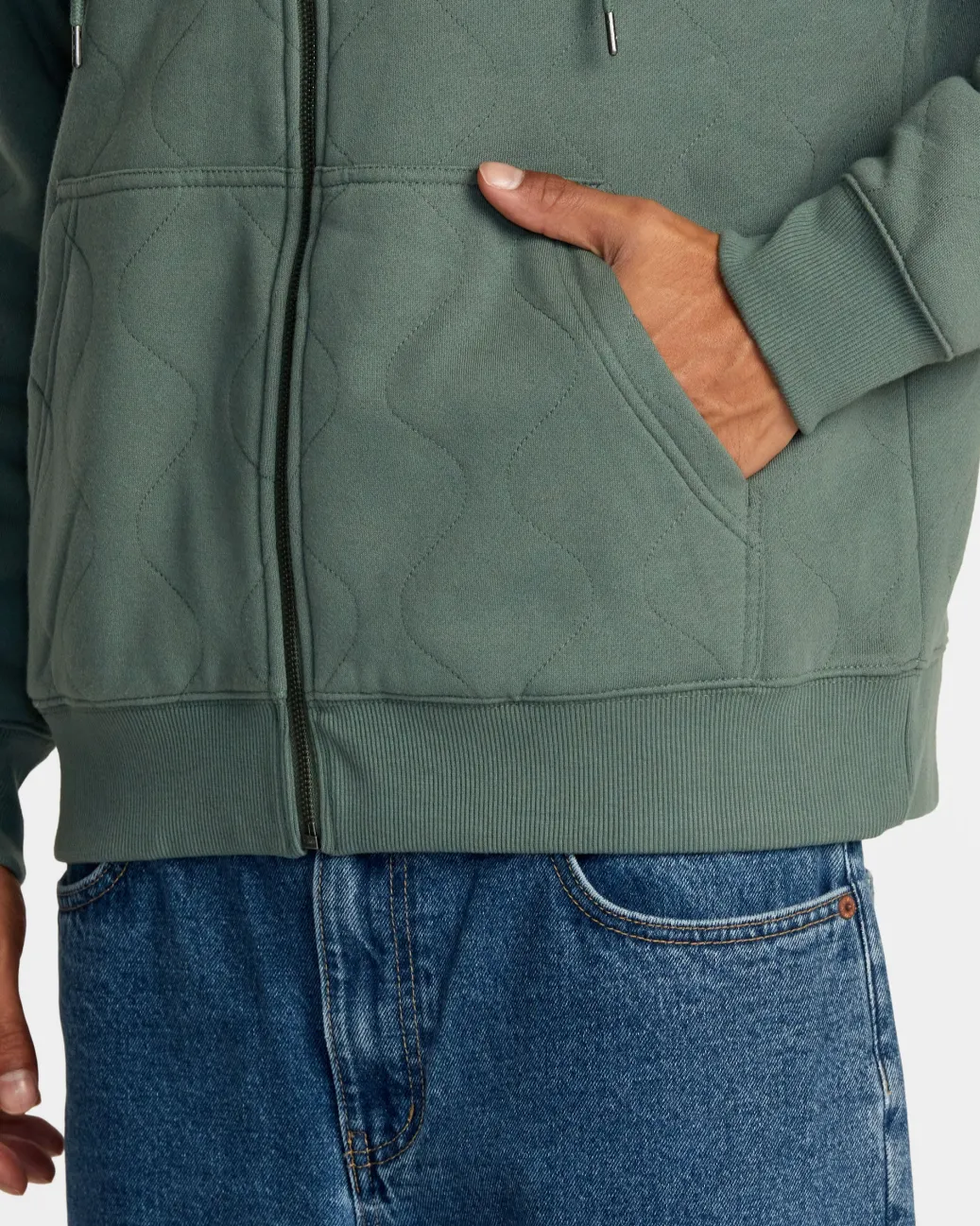A sherpa-lined zip-up hoodie should always be a staple in your closet. And this one comes with an RVCA chest patch, a split kangaroo pocket, and a quilted outer shell. Featured here in the Jade colorway.