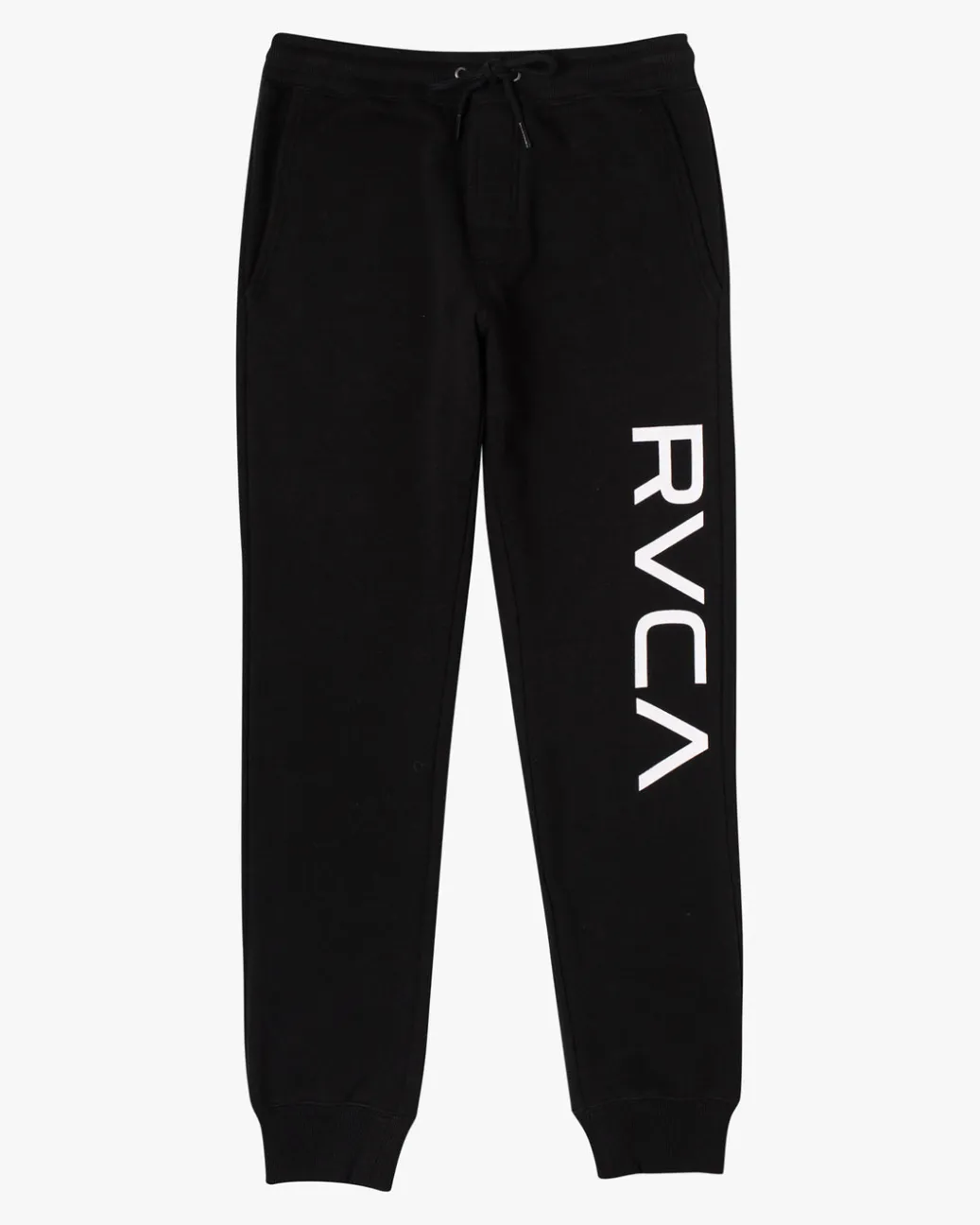 Easy comfort meets bold vibes for days in the Big RVCA Sweatpants. Made from soft cotton poly with fleece lining, these men’s sweatpants feature an elastic waist, adjustable drawcord with faux fly, ribbed trims, pockets throughout and RVCA logo branding. Featured here in the Black colorway.