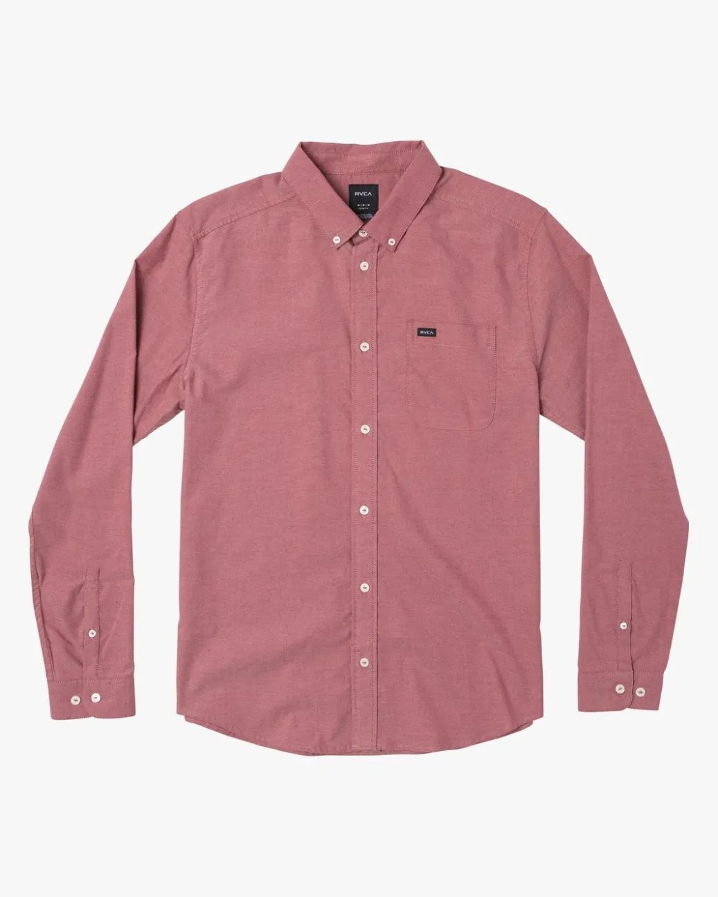 The RVCA That’ll Do Stretch Men’s Long Sleeve Shirt delivers classic lines alongside active function. Adding to a stretch oxford construction, the premium, slim fit men’s shirt offers up signature tones, bringing an original feel to your everyday essential.. Featured here in the Brick Red colorway.