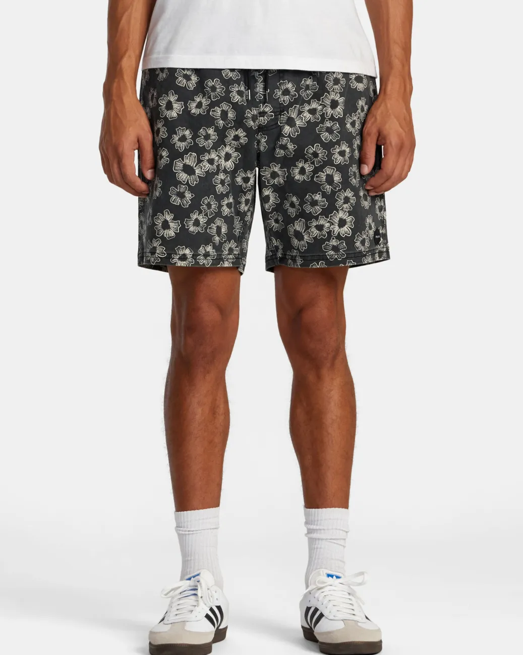 Kick back and standout in the custom RVCA Escape Print Elastic Waist Short. A comfort-driven design with functional stretch, the printed Elastic Waist short features a drawcord at the waist, side seam pockets and a back pocket with a RVCA woven label. A heavy enzyme wash offers the short a broken-in look and feel. Featured here in the Black Floral colorway.
