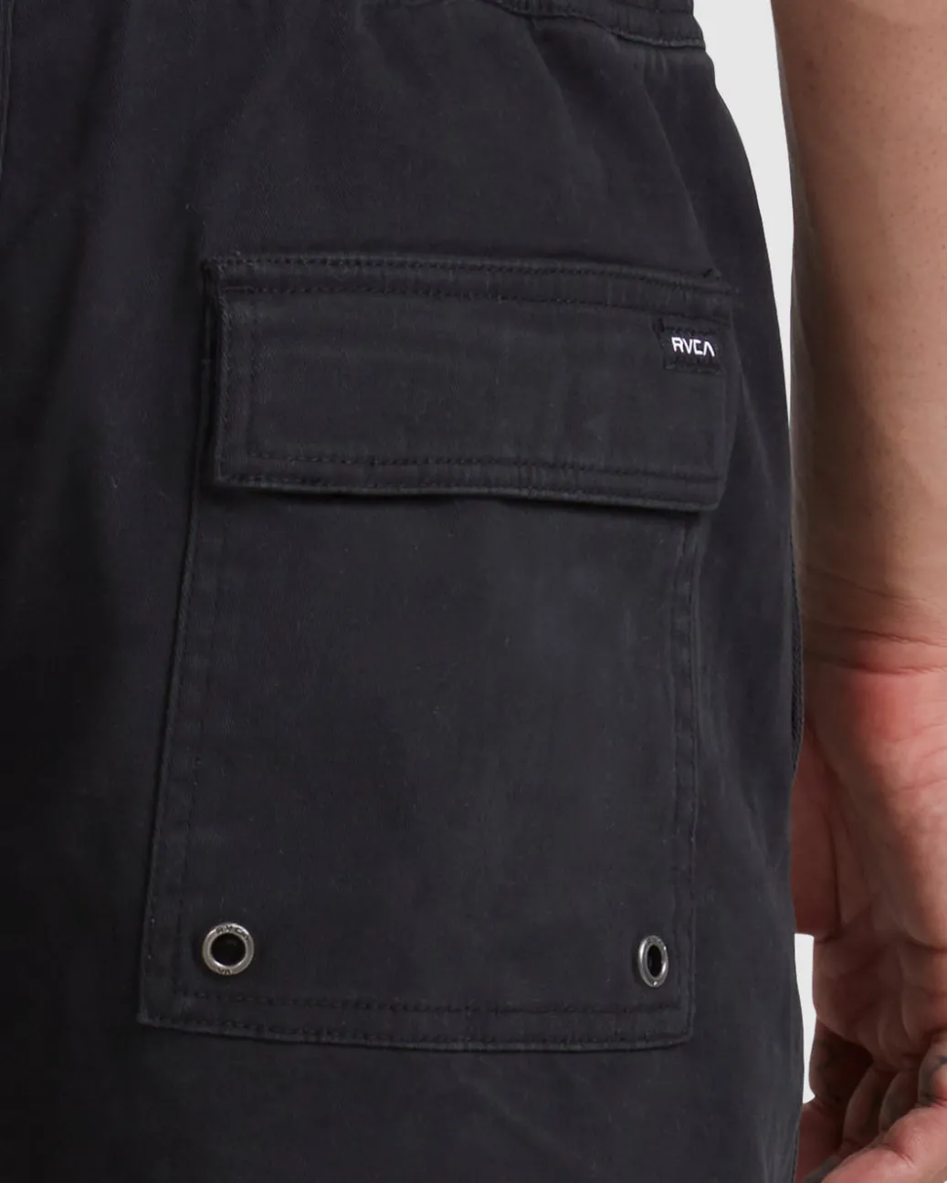 A solid short that won’t hold you back, the RVCA Escape Elastic Waist Short features a comfort-driven design with functional stretch. A solid Elastic Waist short, the Escape keeps to utilitarian lines with a drawcord a the waist, side seam pockets, and a back pocket with a RVCA woven label. A heavy enzyme wash offers the short a broken-in look and feel. Featured here in the Black colorway.
