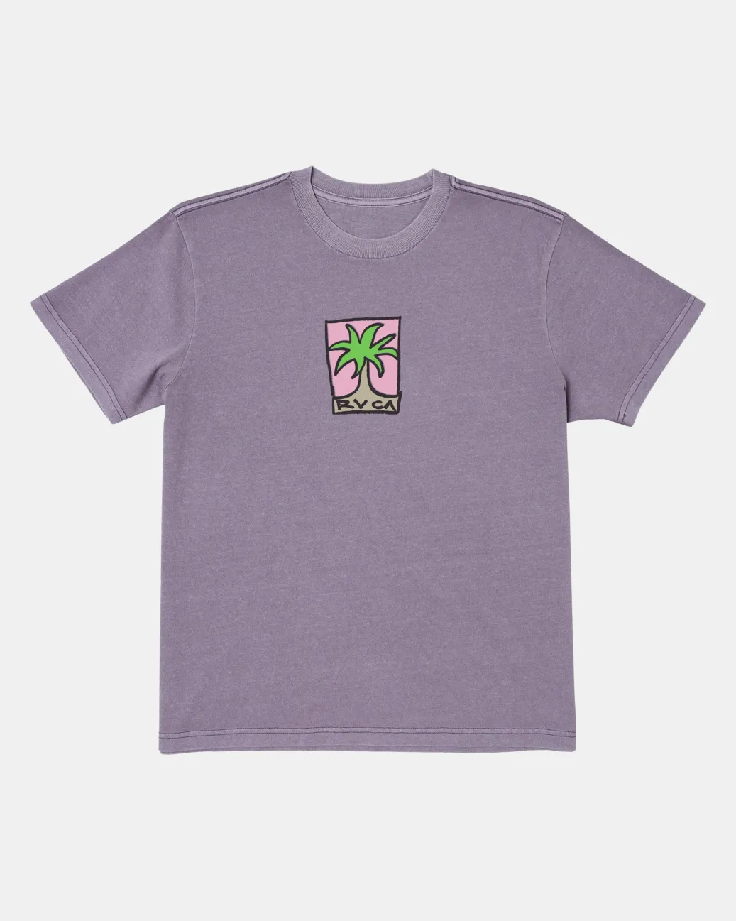 Crafted of soft cotton and cut in a slightly shorter length for a vintage look, RVCA’s Small Palm T-Shirt features a mini puff-ink graphic at the chest. Featured here in the Purple Sage colorway.