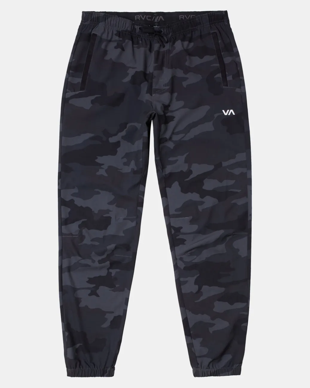 Low-key style meets performance-enhancing design in the RVCA Yogger Track Pants II. Made from premium 4-Way Stretch, these men’s slim fit sweatpants feature an elastic drawcord waist, elastic cuffs, a built-in gusset panel at the crotch, front hand pockets and VA branding at the leg. Featured here in the Camo colorway.