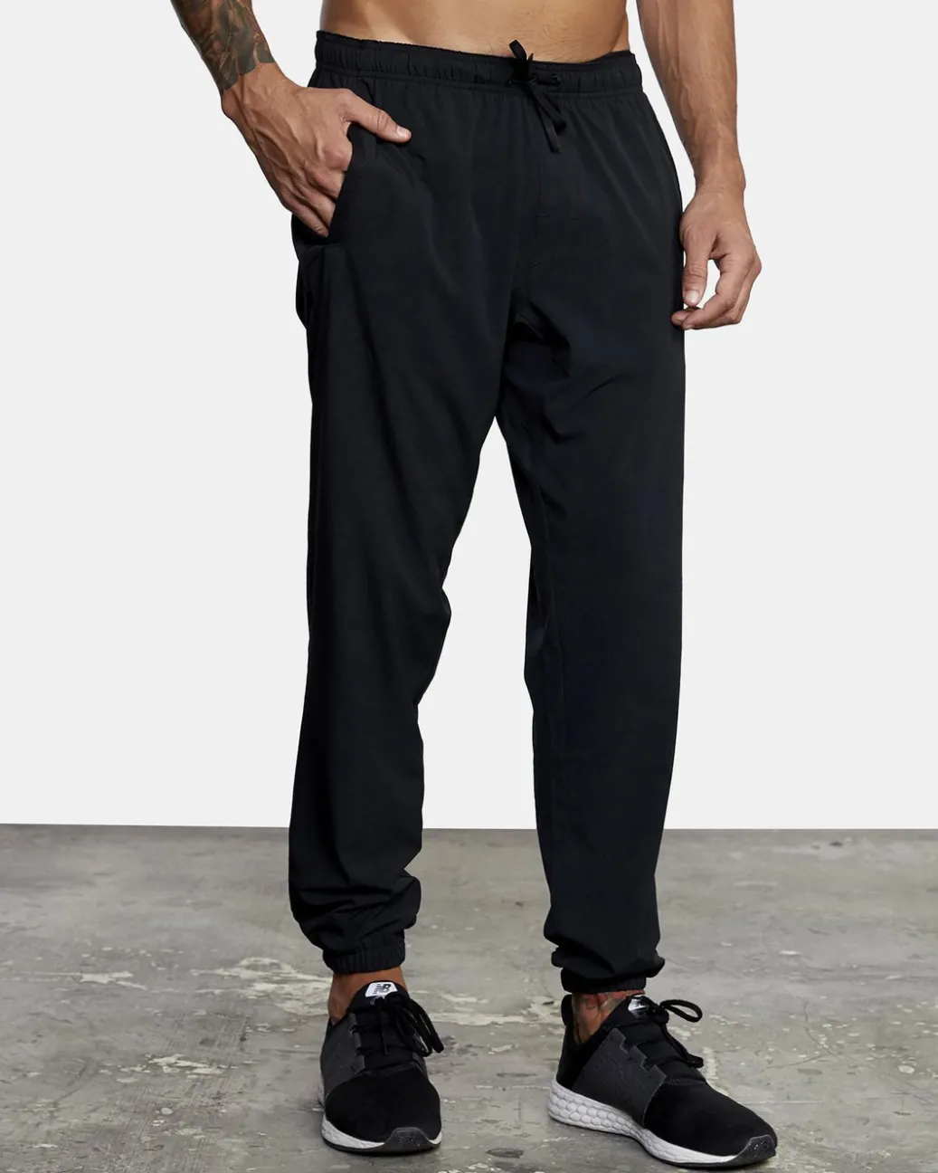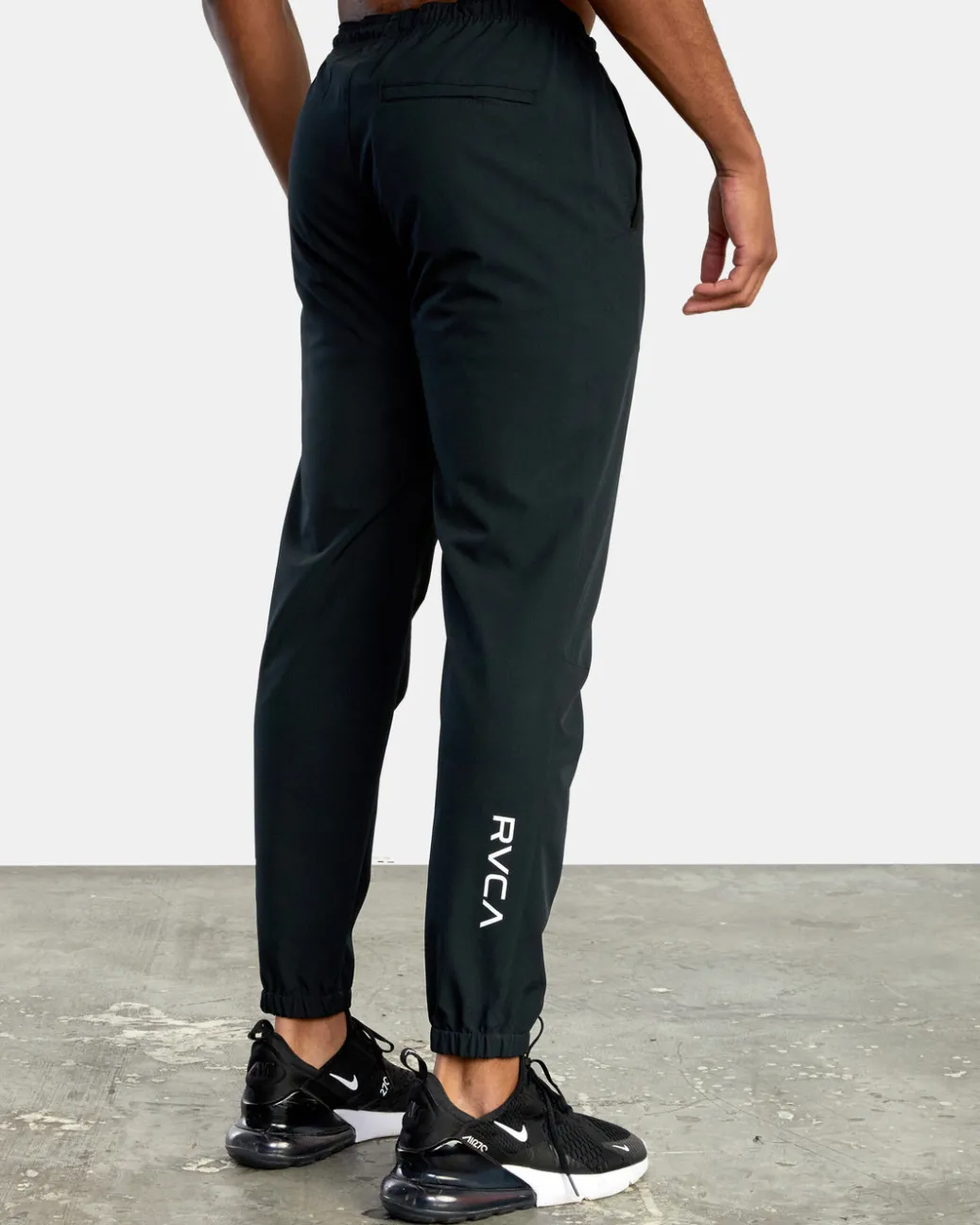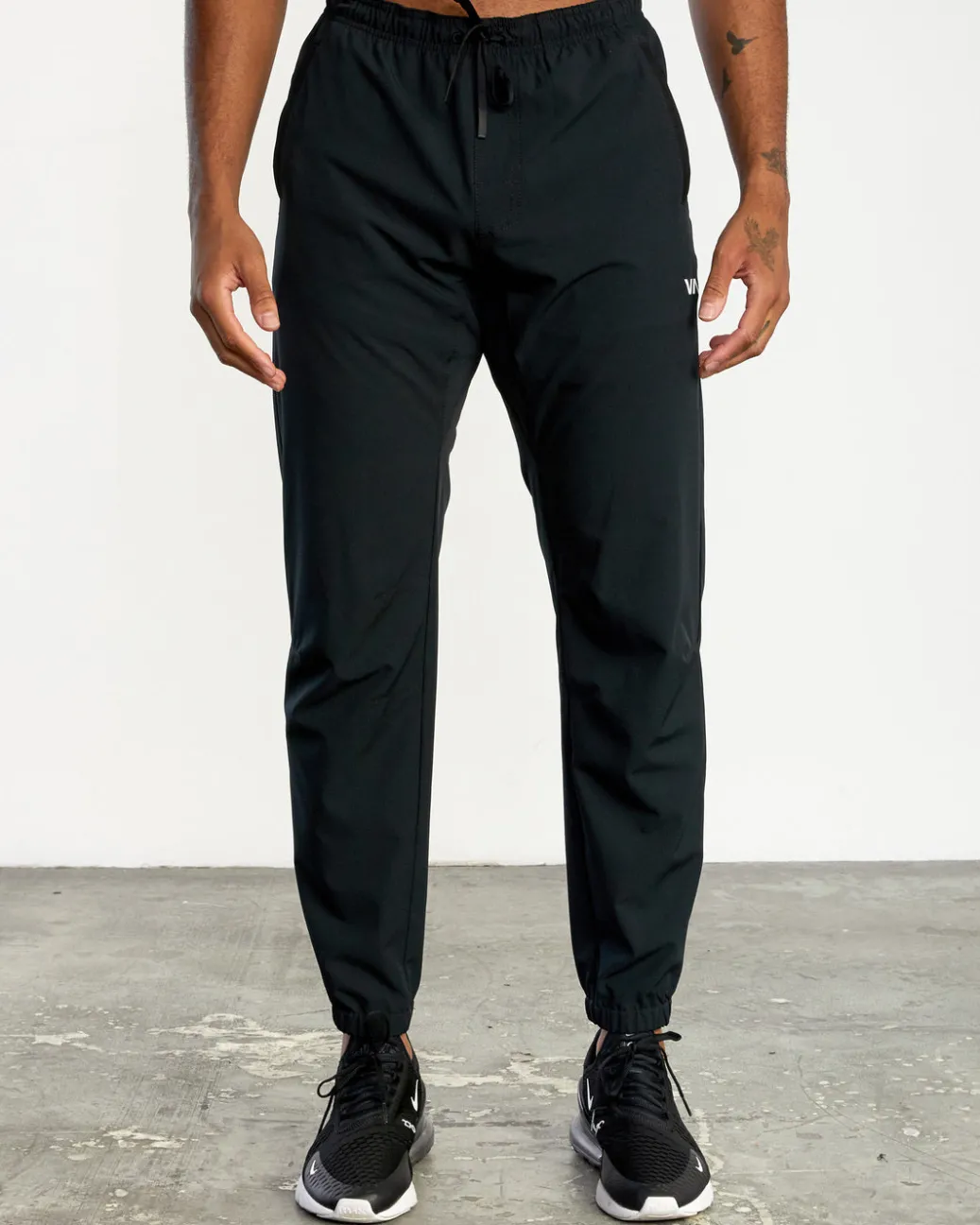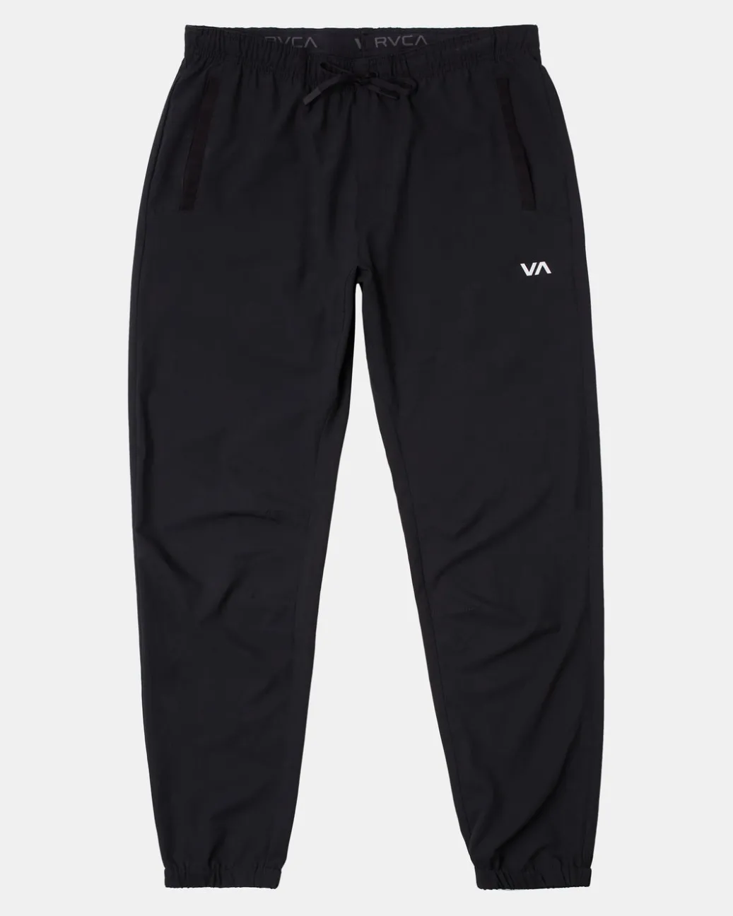 Low-key style meets performance-enhancing design in the RVCA Yogger Track Pants II. Made from premium 4-Way Stretch, these men’s slim fit sweatpants feature an elastic drawcord waist, elastic cuffs, a built-in gusset panel at the crotch, front hand pockets and VA branding at the leg. Featured here in the Black colorway.