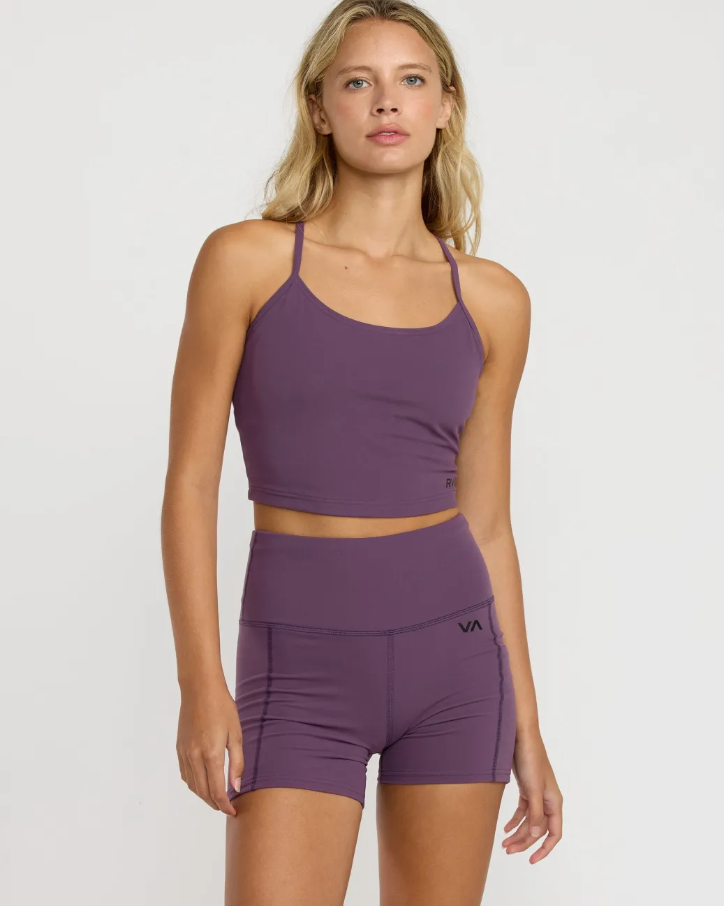 Outfit your active lifestyle with the VA Essential Pocket Shorts II from RVCA’s VA Sport Women’s Collection. Designed with partially recycled performance fabric for comfort, stretch and durability, these high-waisted fitted shorts are finished with a side media pocket and a VA logo hit on the bottom left hem. Featured here in the Plum Ash colorway.