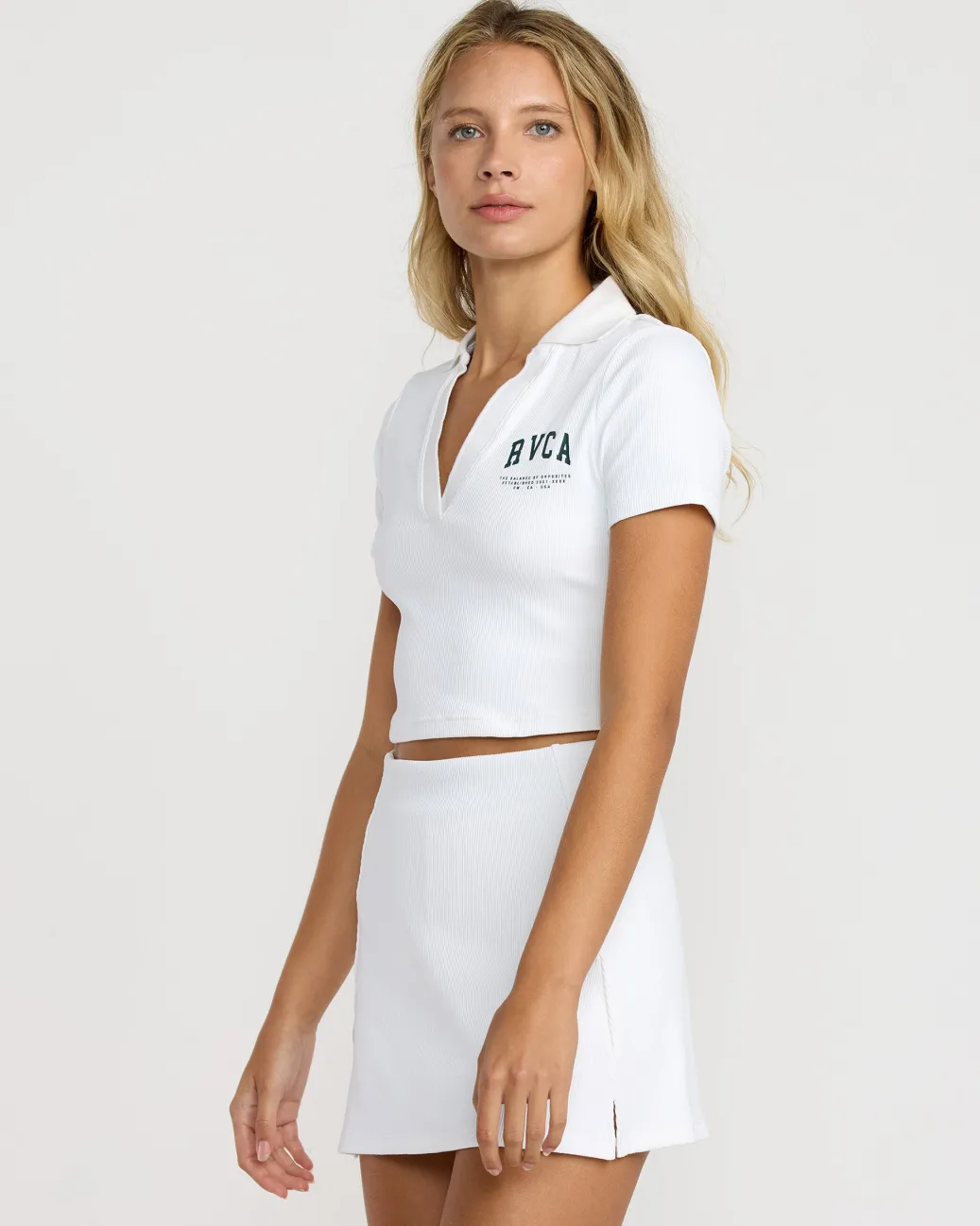 Turn preppy on its head with the Sport Chase Copped Polo Shirt. Crafted in stretch nylon rib for texture and comfort, this cropped, form-fitting athletic staple features self collar, placket, and metal branding for an edgy take on the classic polo. Screen-printed art at the left chest. Featured here in the Whitecap colorway.