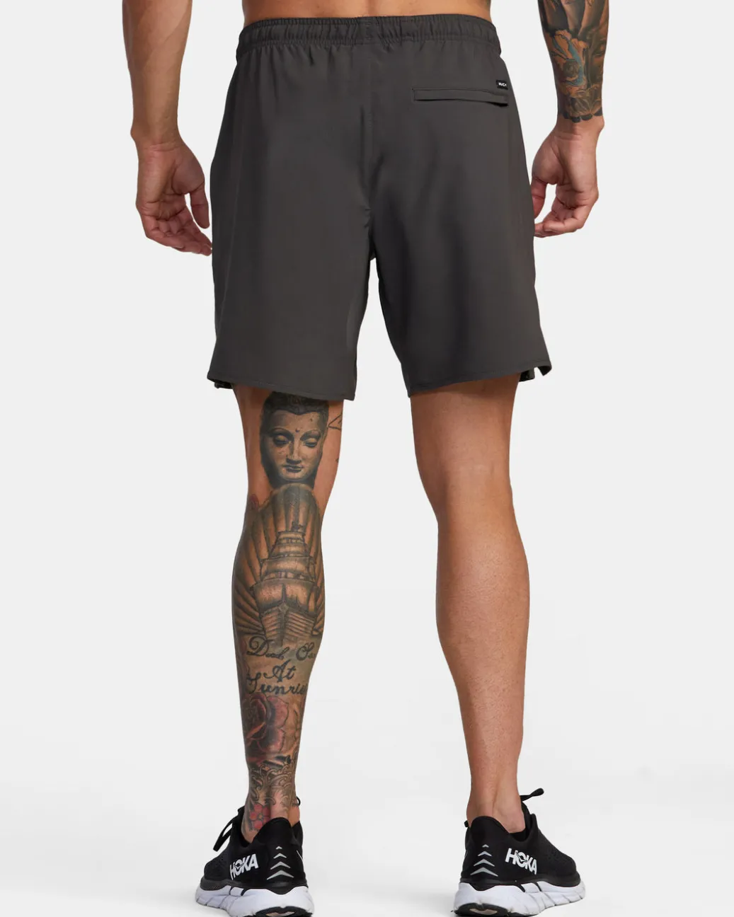 Combining heritage design and performance-enhancing comfort, the RVCA Yogger Stretch Elastic Waist Athletic Shorts 17″ have you covered. These men’s athletic shorts are made from stretch polyester and feature an Elastic Waist drawcord waist, slightly scalloped hem with split side vent and pockets throughout. Topped with RVCA VA branding. Featured here in the Slate colorway.