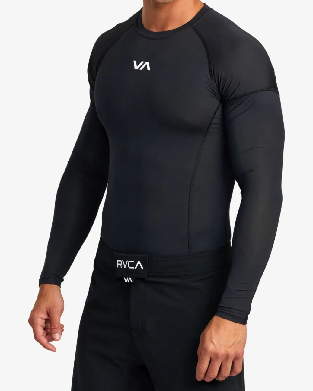 Made of stretchy and strong recycled fabric, this VA Sport long-sleeve rashguard has a fitted shape with raglan sleeves for better mobility. Comes in a range of fresh prints and colorways. Featured here in the Black colorway.