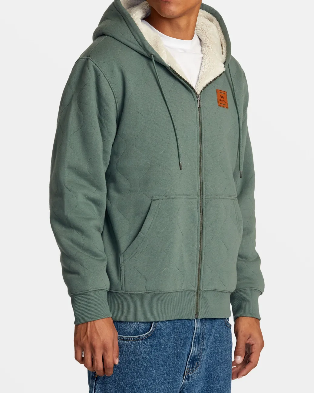 A sherpa-lined zip-up hoodie should always be a staple in your closet. And this one comes with an RVCA chest patch, a split kangaroo pocket, and a quilted outer shell. Featured here in the Jade colorway.