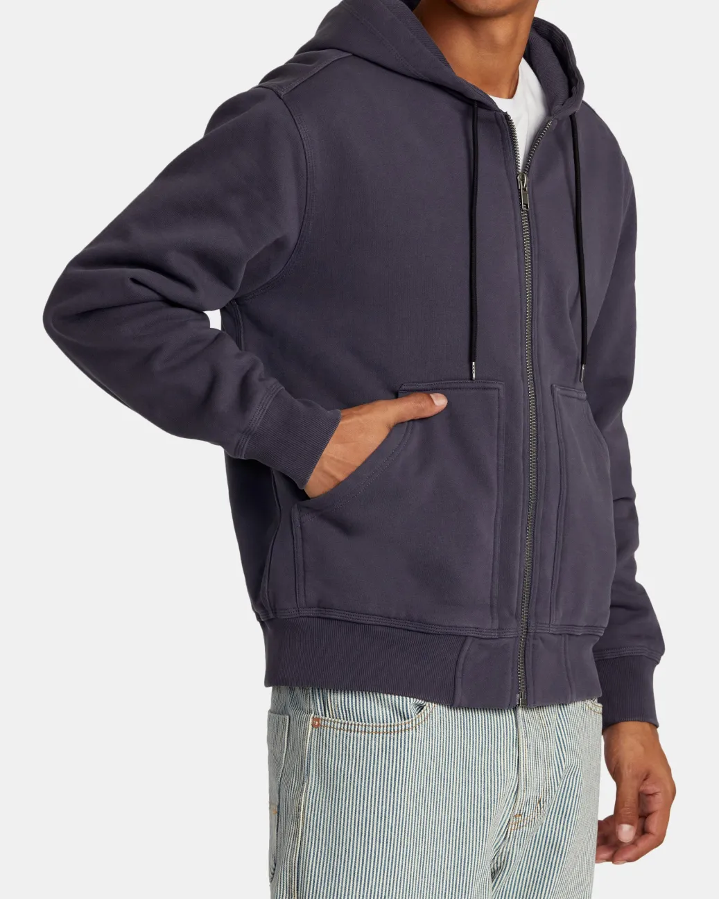 Step up your hoodie game in the RVCA Chainmail Zip-Up Hooded Sweatshirt. Made from soft cotton fabric with waffle knit lining, this zip-up hoodie features an adjustable drawcord, long sleeves, ribbed cuffs and hem, front pockets and RVCA branding. Featured here in the Ink colorway.