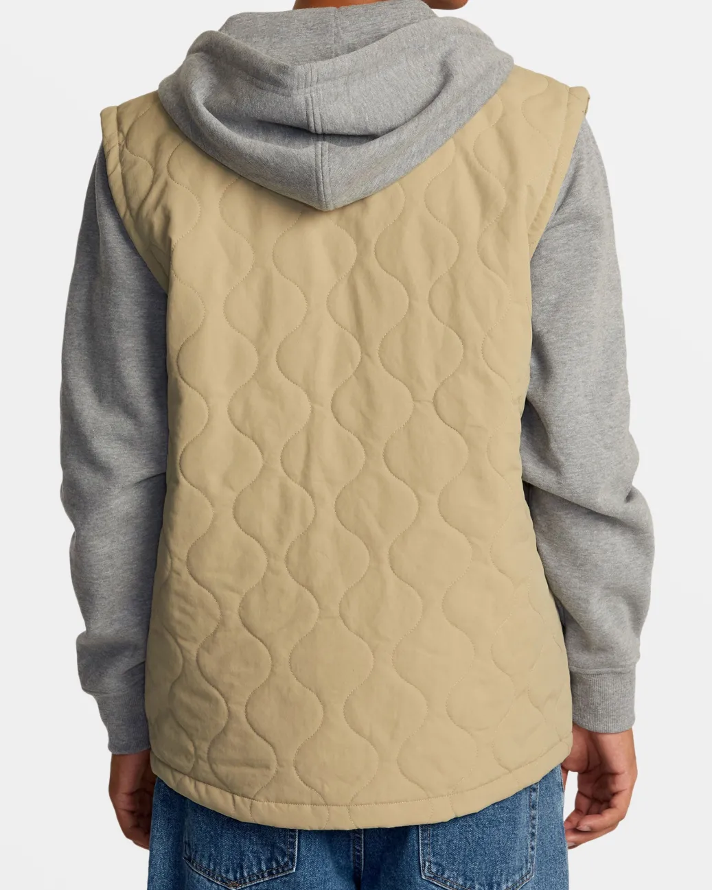 Innovative design meets ultimate comfort in the RVCA Grant Puffer Jacket, featuring contrast fabric at the hood, sleeves and body for a bold look throughout. Made from quilted woven nylon with Poly-fil and knit jersey for a soft, insulated feel, this men’s hooded jacket features a zip front closure, ribbed cuffs and adjustable drawcord for added protection from the elements. Finished off with self fabric patch pockets and our custom mini RVCA motors patch at the left chest for vibes. Featured here in the Khaki colorway.