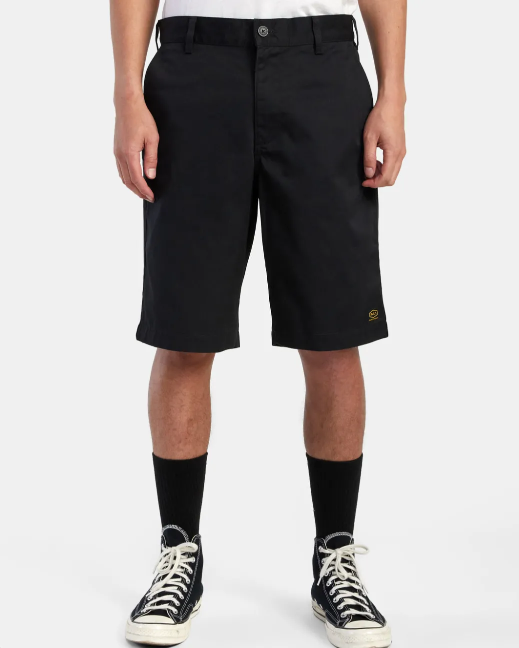 Built to last, the RVCA Americana Shorts deliver a timeless design that works with your active lifestyle. Part of the Dayshift Collection, the men’s shorts build on a relaxed fit, adding subtle customization with logo buttons, VA embroidery at the coin pockets, and a woven label at the back welt pocket. Made from heavyweight woven fabric for an authentic, built-to-last feel. Featured here in the Black colorway.