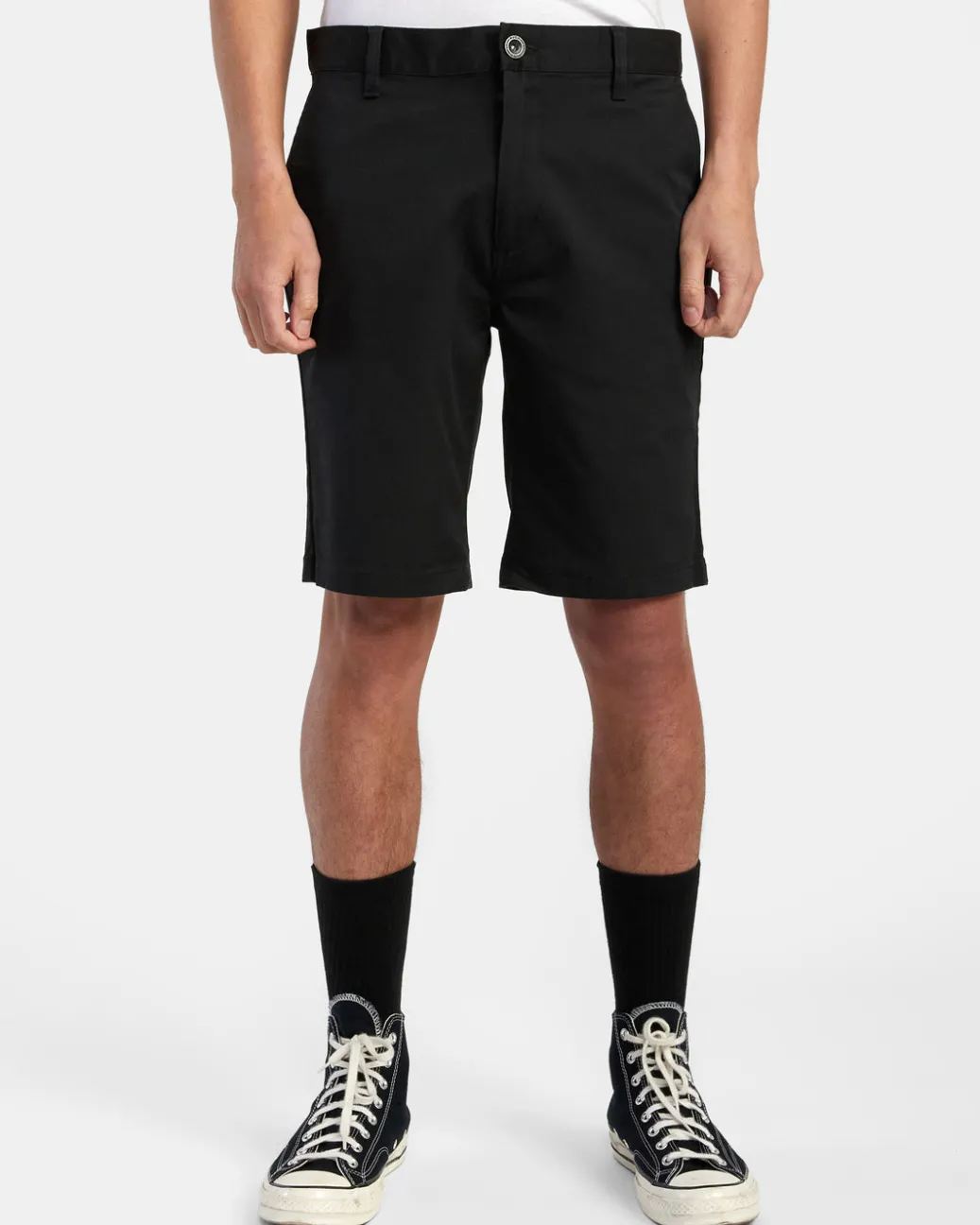 The RVCA Weekend Stretch Chino Shorts deliver clean lines matched with comfortable stretch. Bringing together durable blended cotton fabrication and timeless design, the men’s shorts feature a slim, straight fit, topped with slash pocketing at the front and welt pockets at the back. Featured here in the Black colorway.