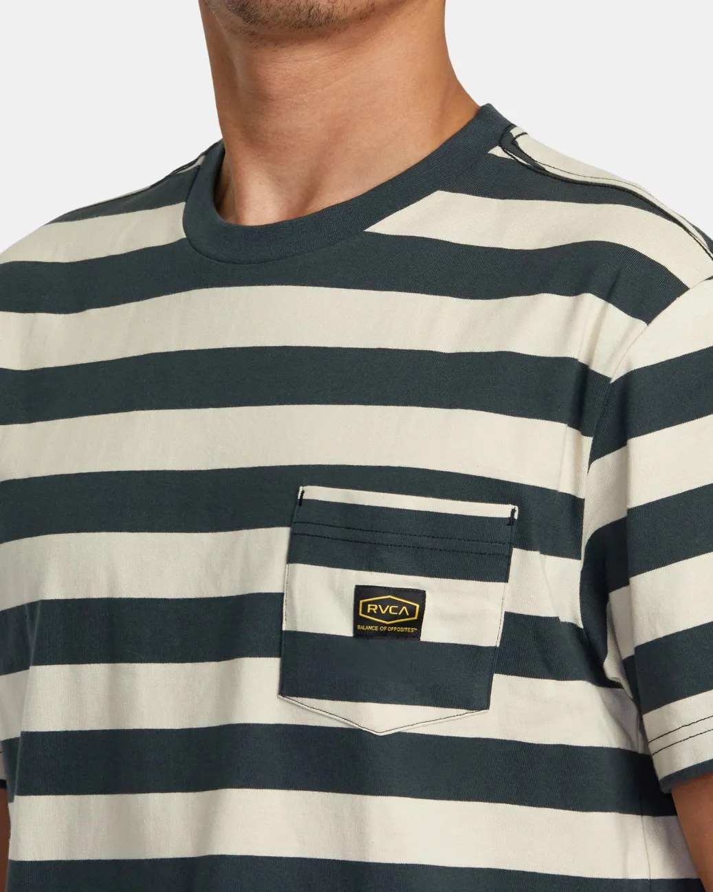 Experience unbeatable comfort and style with RVCA’s Day Shift Stripe T-Shirt. Made of soft cotton slub jersey, this short-sleeve tee features a chest pocket, ribbed crew neck, and RVCA label. Featured here in the Garage Blue colorway.