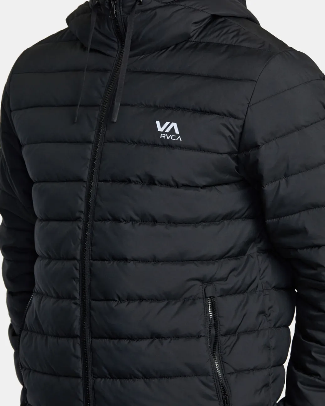 Keep dry and protected from the elements in RVCA’s Packable Puffa Puffer Jacket, featuring a durable and water-repellent fabric treatment, regular fit, hooded neck, long sleeves, full zip closure, slant pockets, and an encased bungee hem to keep the cold out. The packable design rolls up small for easy travel. Featured here in the Black colorway.
