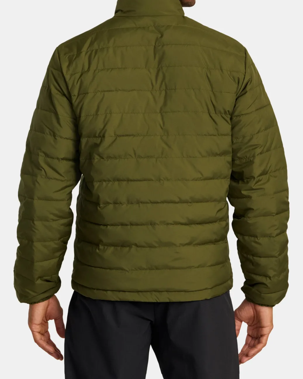 Double your outerwear options with this RVCA reversible puffer jacket. Crafted of durable poly, the mock neck design features a full zip closure and slanted pockets for added convenience. Featured here in the Olive colorway.