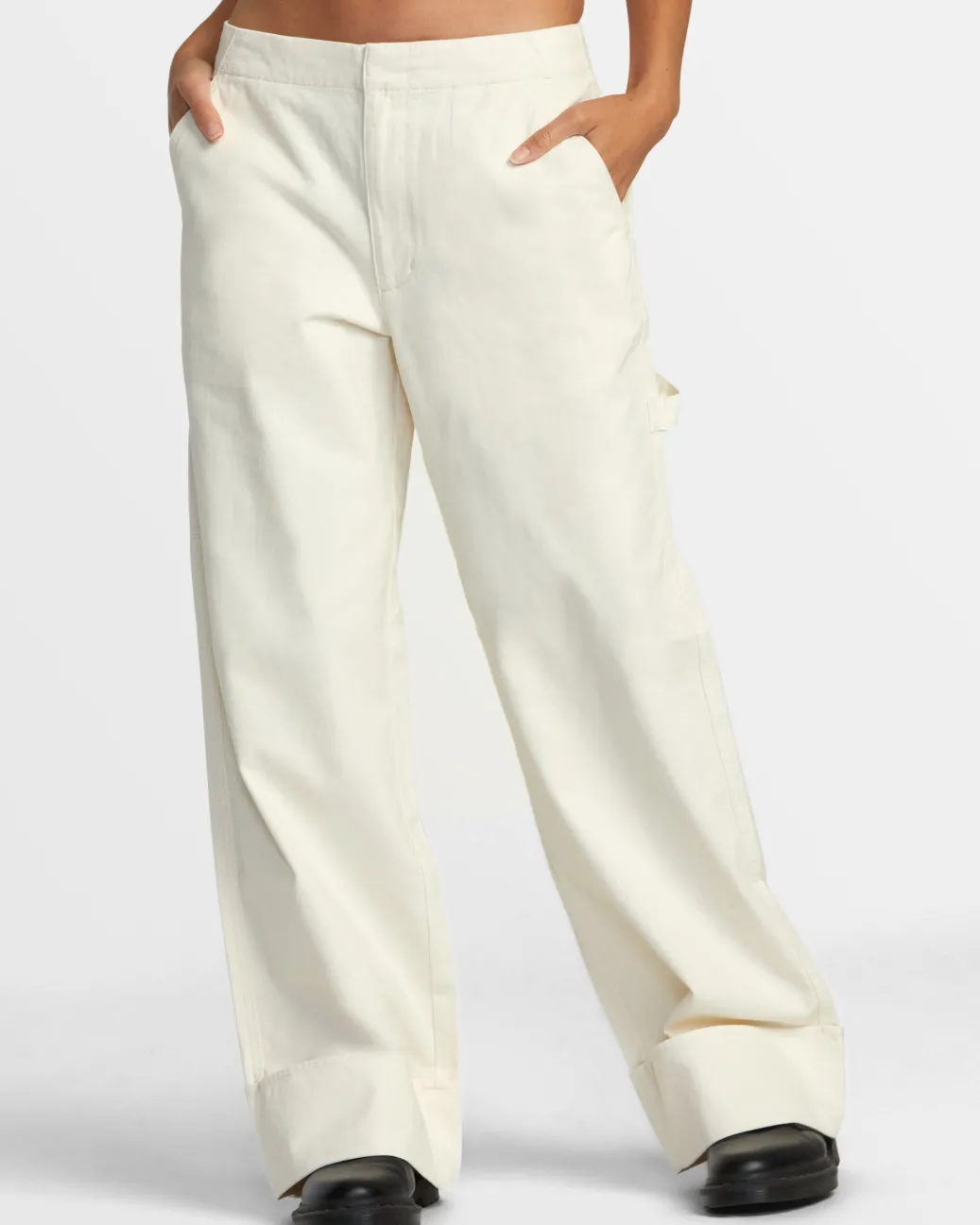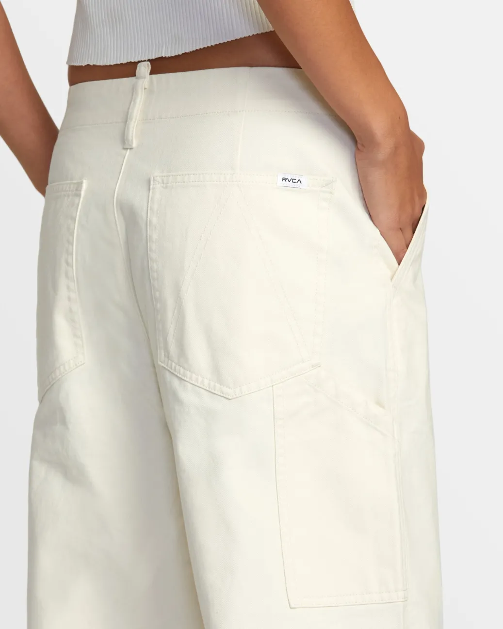The Back Bay pants update a chic wide-leg chino with workwear trims for a look that is distinctly RVCA. Featured here in the Latte colorway.