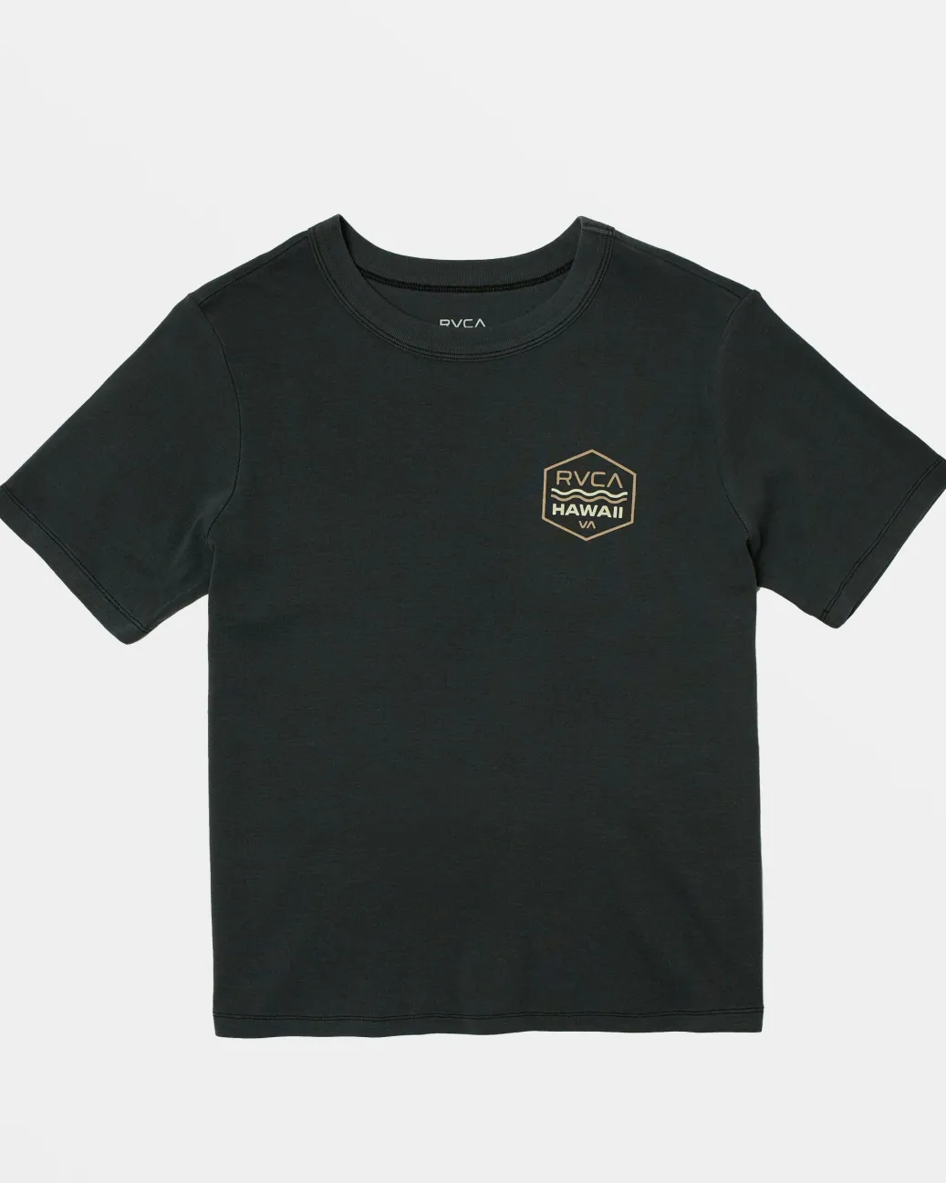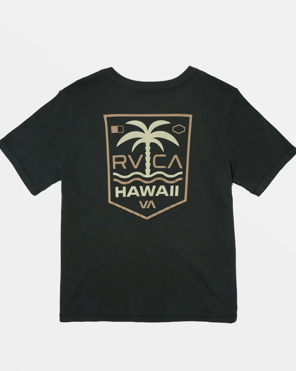 Perfect for laidback days, the Palm Shield soft cotton jersey tee features a regular fit and a classic crew design. The pigment dye gives it a broken-in look and feel from the first wear, while the small chest graphic reps authentic style from the RVCA Hawaii collection. Featured here in the Rvca Black colorway.