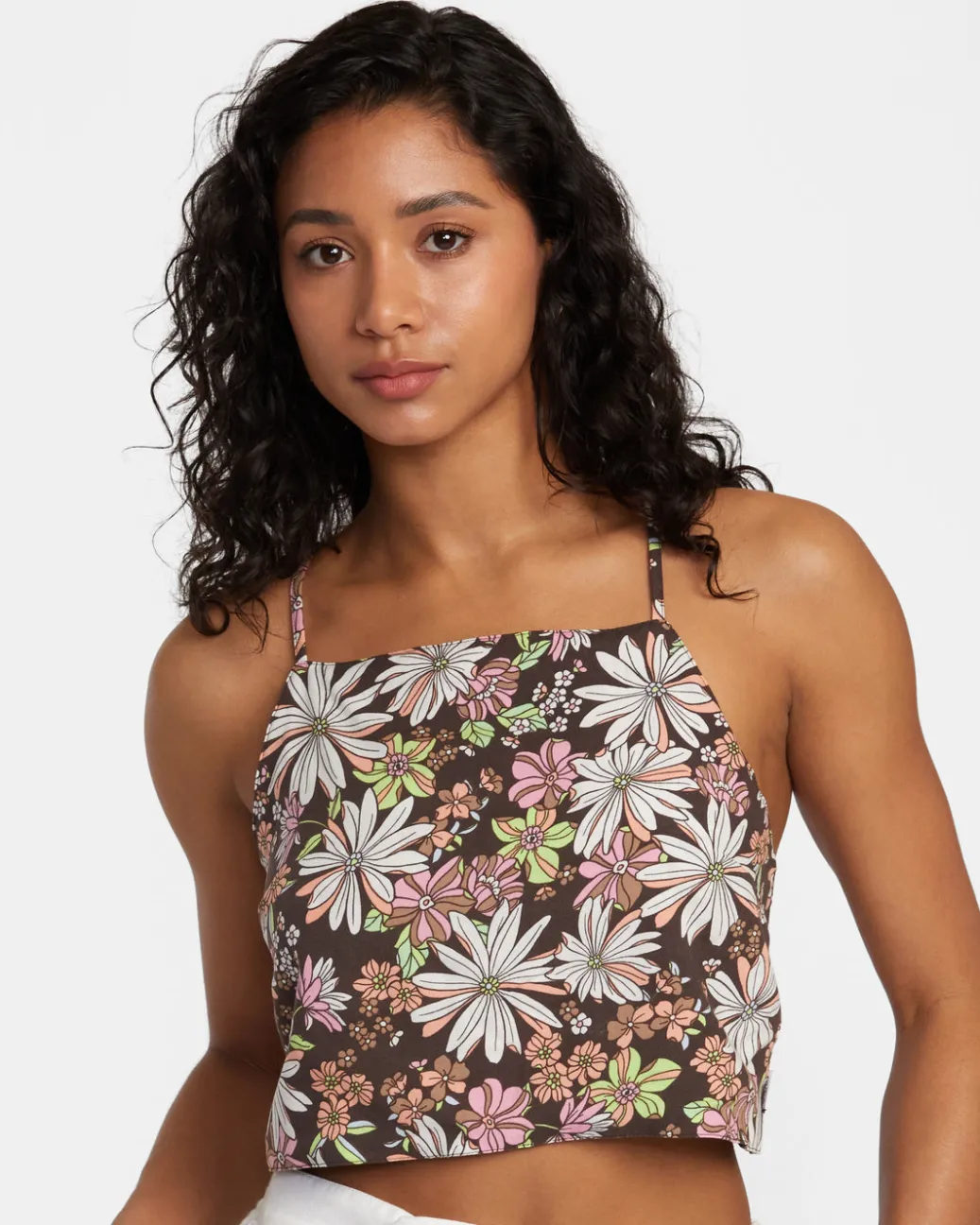 Airy and cloud-soft, RVCA’s Sasha Tank featuresLivaeco fabric in a draped fit with a square neckline, adjustable straps, and tie-back closure for a carefree look. Featured here in the Java colorway.